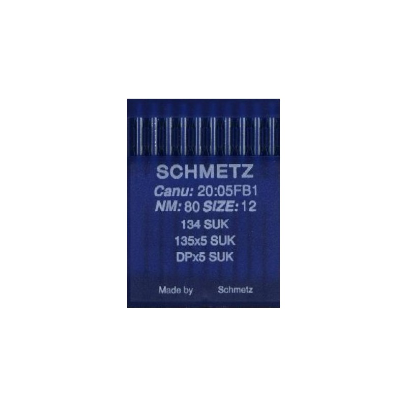 Aguja redonda 134 (R) SUK de tronco mas ancho que utilizan muchos modelos de máquinas de coser industriales planas. Aguja perfecta para tejidos elásticos y de punto. Gracias a su punta de bola mediana, evita romper puntos.
