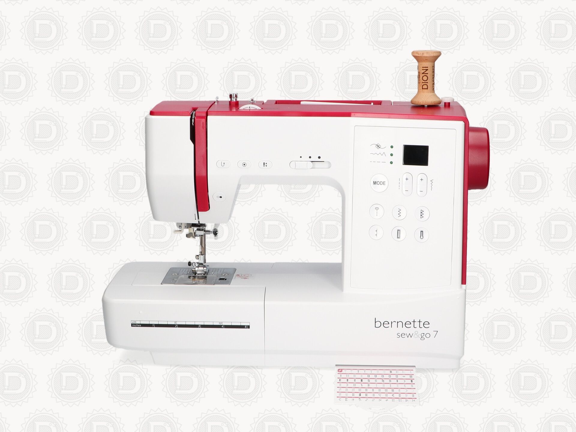 La máquina de coser Bernette sew&go 7 es un modelo de máquina auperior a los modelos anteriores, es una máquina electrónica de brazo libre que incluye 80 puntadas diferentes con una generosa anchura de puntada de hasta 7 mm y 15 posiciones de aguja . La función práctica de strat/stop te permite controlar la velocidad de costura sin utilizar el pedal, y poder regularla a nuestras necesidades . El posicionador de aguja arriba / abajo permite ajustar la posición de la aguja en el extremo de una fila de costura, lo cual es una gran ventaja por ejemplo para coser esquinas.