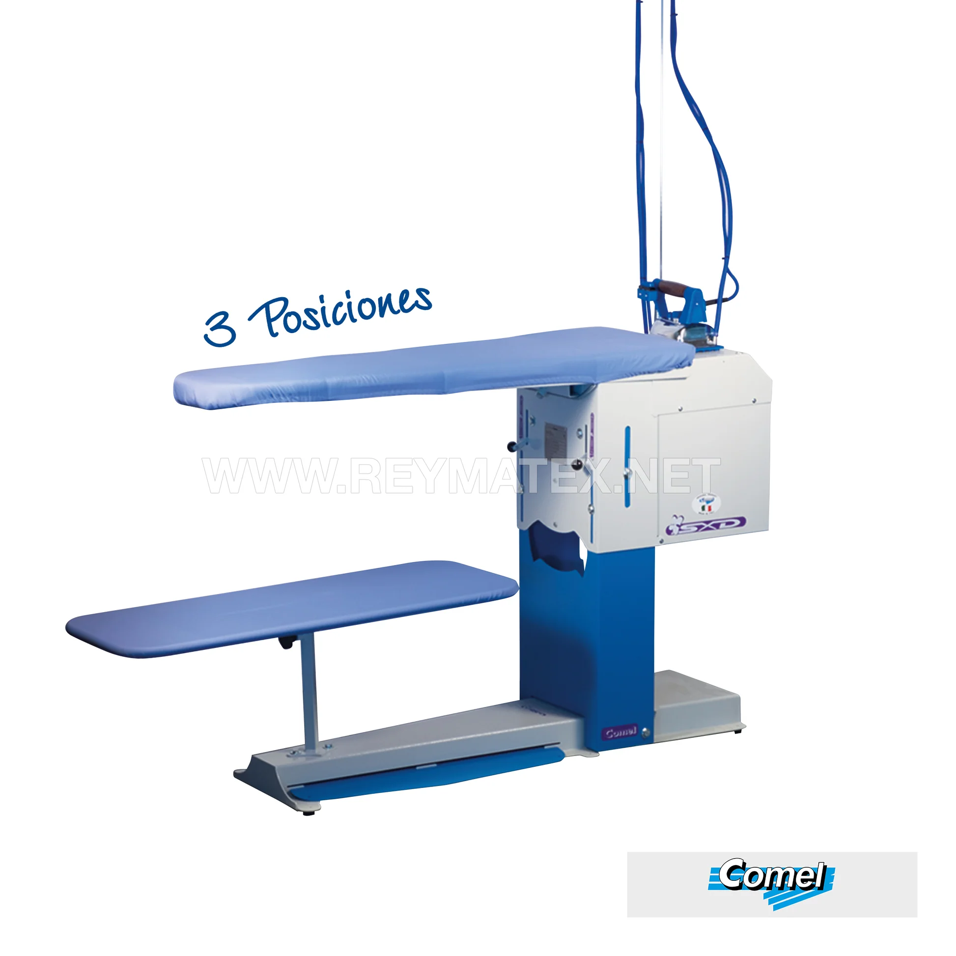 Mesa universal y industrial con aspiración y calentado del plato. Regulable en altura (3 posiciones: mínima 82 cm, media 90 cm y máxima 98 cm). Se entrega en la posición más baja ocupando el embalaje menos espacio (menor coste de transporte). El pedal y el brazo de aspiración (opcional) pueden colocarse a la derecha y a la izquierda (permite trabajar a personas diestras y zurdas). Mayor aspiración. Medidas del plato: 120×25-35 cm.