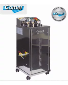 Generador de vapor para 2 planchas equipado con 2 electroválvulas con potencia de 6 Kw (3 resistencias de 2 Kw) y electrobomba de alimentación automática. No viene equipada con planchas de mano. Puede trabajar con 4 Kw ó 6 Kw.