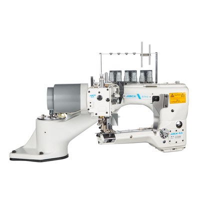 Equipada con recubrimiento doble cara, cuchilla para el corte de ambos tejidos, para género medio y grueso, cortahílos neumáticos, aspirador de cadeneta y motor Direct Drive. Distancia entre agujas de 6 mm.