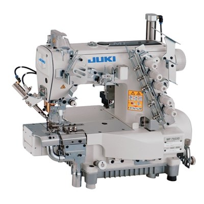 Máquina recubridora de base cilíndrica cortahílos neumáticos Direct Drive Equipada con cuchilla a la izquierda para recortar el sobrante del tejido, alzaprensatelas y disponible en 3 agujas de 5,6 mm.