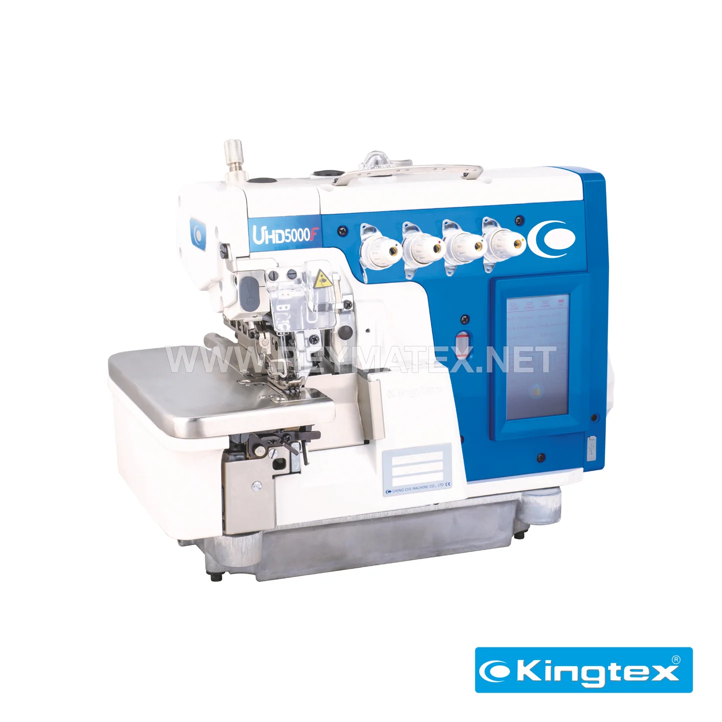 Overlock de 2 agujas, 5 hilos (5×5) equipada con motor servo en el cabezal, función de posicionamiento de aguja y lámpara de LEDs.