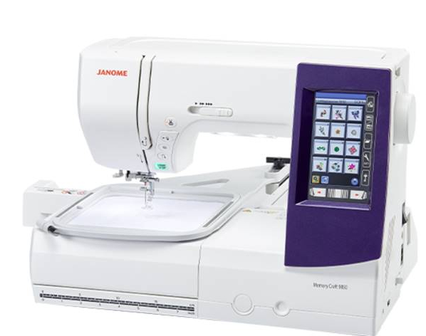 Janome MC9850 Maquina para coser y bordar con panel táctil a color, garfio rotativo con carga de bobina superior y velocidad de bordado: 60-800 ppm.