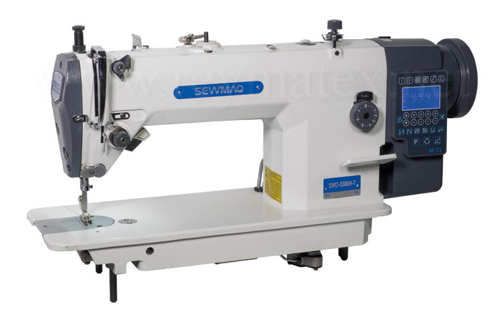 Máquina de coser pespunte de 1 aguja con engrase automático. Equipada con motor servo en el cabezal con funciones de cortahilos, remates, retira hilos, alzaprensatelas, posicionamiento aguja y luz LEDs. Incluye programador. Garfio de gran capacidad, velocidad 2.500 PPM, longitud máxima de puntada 8 mm para géneros pesados y calzado.